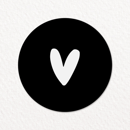 Versier je post of cadeautjes met deze leuke witte sticker met een zwart hartje. Deze sticker is ook ideaal als sluitsticker voor trouwpost of geboortekaartjes.