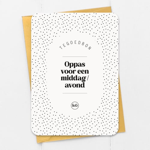 Het ideale cadeautje voor jonge ouders is een tegoedbon voor een middag of avondje oppas, zodat ze er even lekker samen tussenuit kunnen. De tegoedbonnen zijn gedrukt op BioPuur, dit is natuurlijk gebleekt FSC papier.